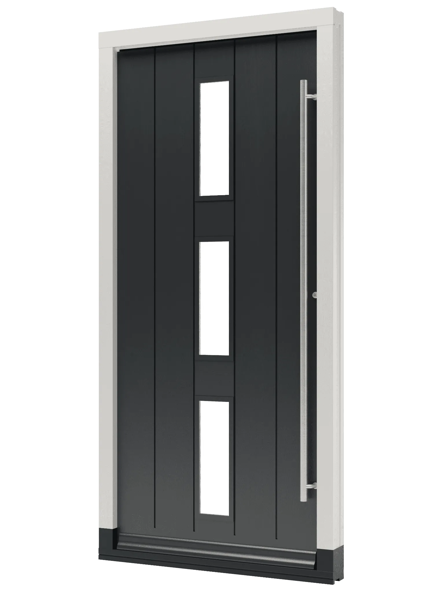 Bekijk hier onze houten voordeur TH09, deze voordeur is voorzien van drie verticale glasvakken en daarnaast worden er verticale groeven toegevoegd aan de deur voor een luxueuze uitstraling. Bij het samenstellen heb je daarnaast de mogelijkheid om te kiezen voor een stanggreep in diverse uitvoeringen. Op deze manier kun je de uitstraling van de houten voordeur geheel naar eigen hand zetten! Start vandaag nog met het samenstellen van je houten voordeur bij Toelevering Online!
